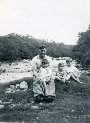 We called in on Margaret. She was by now a widow and had recently moved from the run down croft that she lived in after her marriage. She had been given a council house in Morar. In addition to our family were Margaret's baby son, John, her adopted children Alan and Cathie, her father-in-law, her cousin Jimmy and his pal from the RAF. Somehow we all managed to fit in!